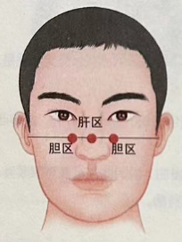 如果这一部位有红血丝状、青春痘,或早晨起床后嘴里发苦,说明胆部可能有了轻微炎症。
