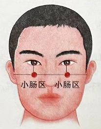 如果这一部位有红血丝、青春痘、斑、痣或瘩子,说明小肠吸收功能不好,可表现为大便演稀或一天两次大便。