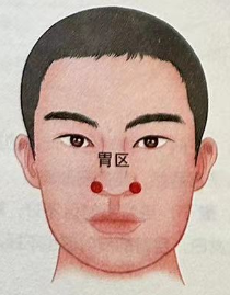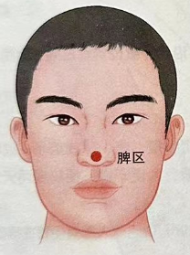 如果此处发红或有酒糟鼻或鼻头肿大,说明可能脾虚或脾大,一般会感觉头重、脸颊疼、心烦等。