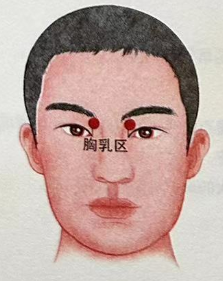 如果此处出现青春痘(疙瘩),或此处与面部颜色不一样,说明此人心理压力比较大。