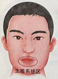 反射区在人中及嘴唇四周部位。